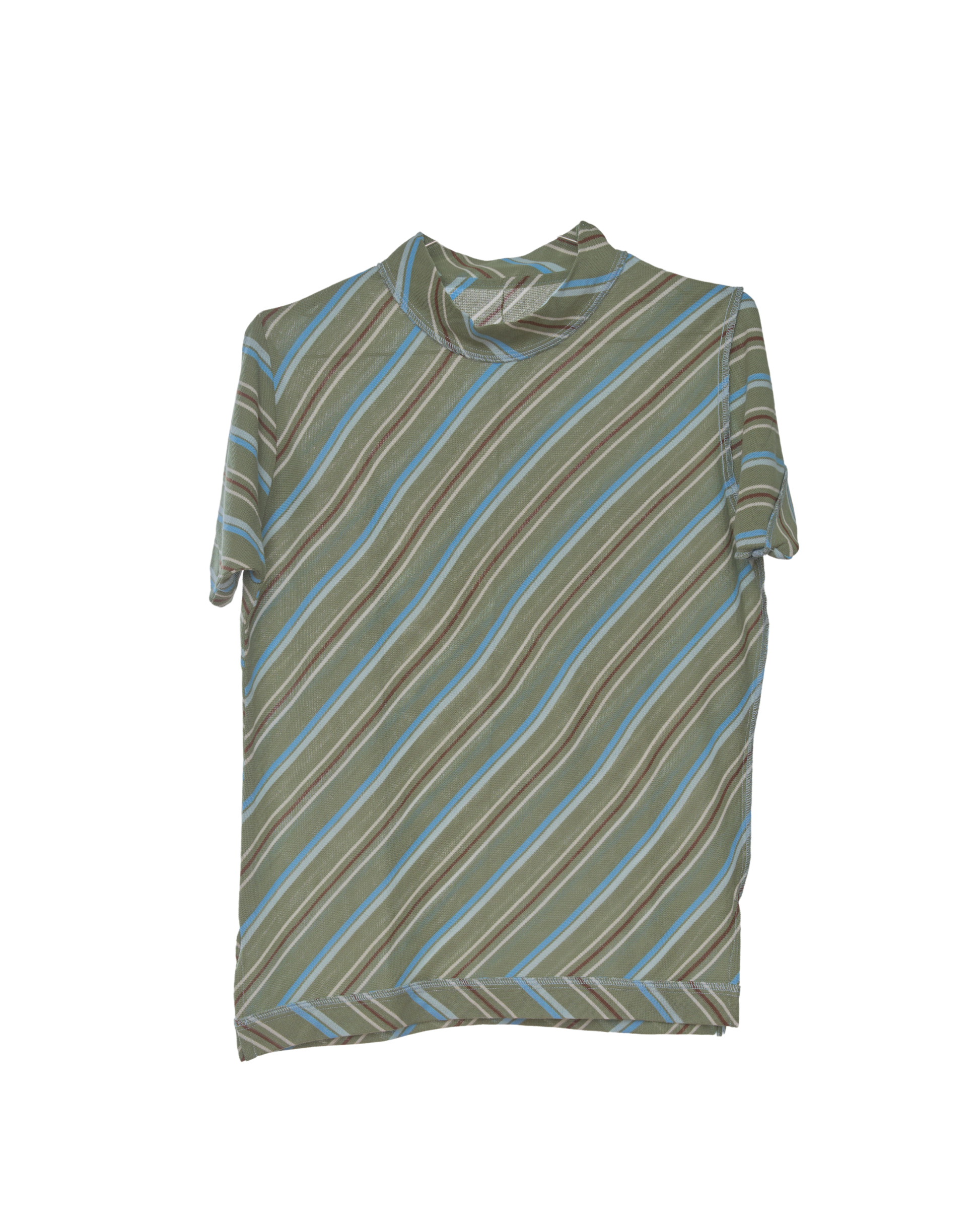 The Baby Tee is an evolved Box Tee redesigned for a more cinched look with a shrunken box silhouette and cut on the bias for a diagonal stripe detail.