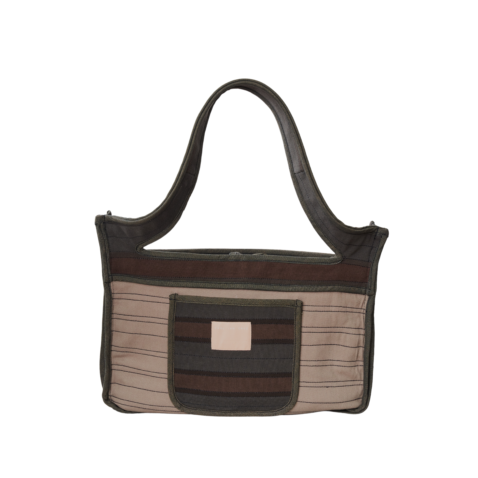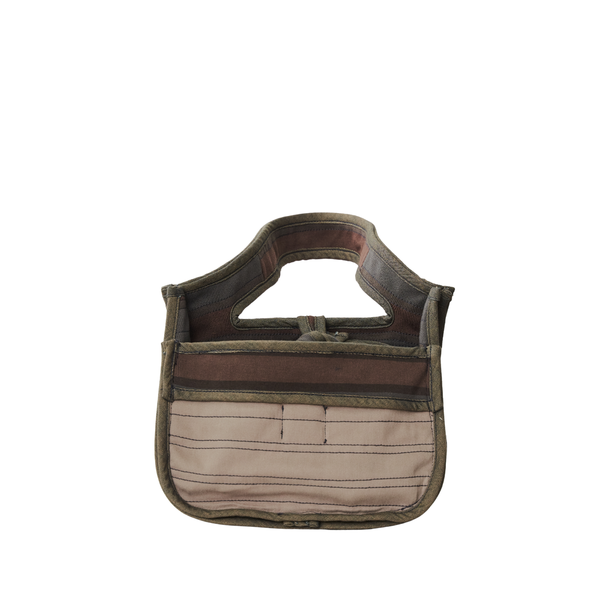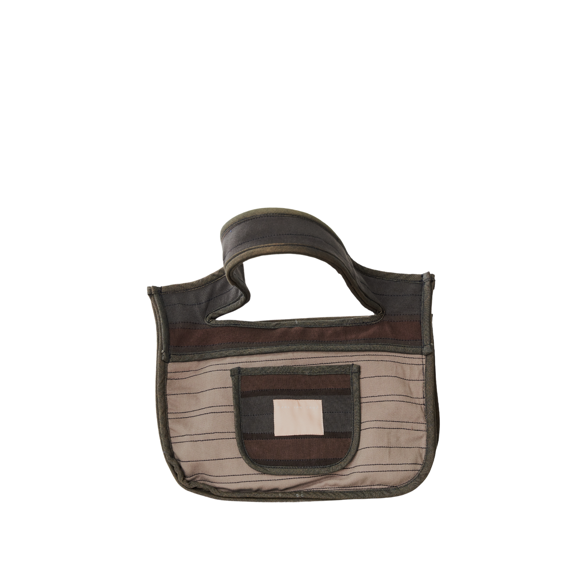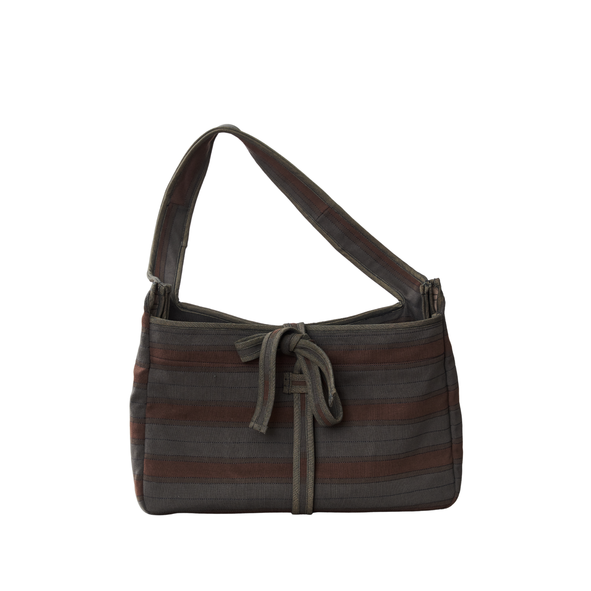 A placemat-shaped bag in rib, twill, and poplin featuring ties to secure the slashed opening, providing easy access to its contents.
