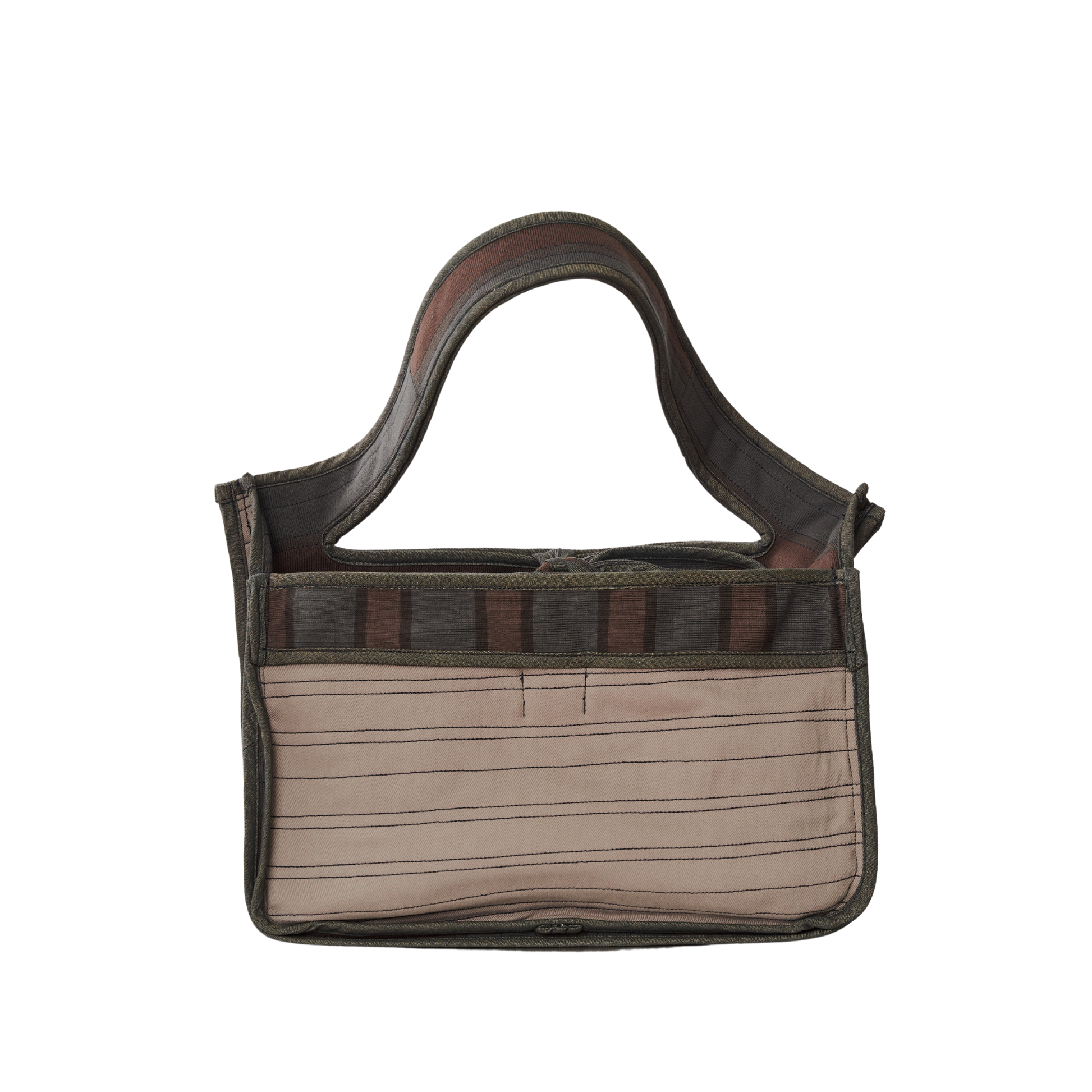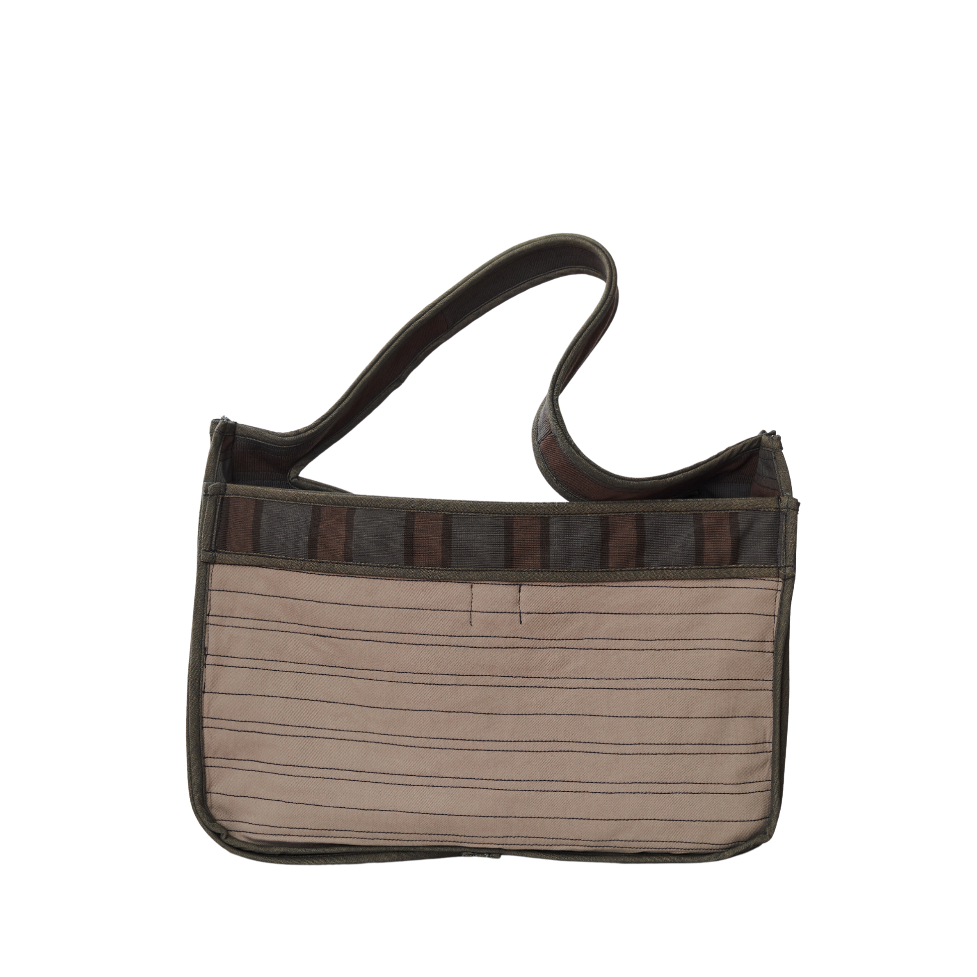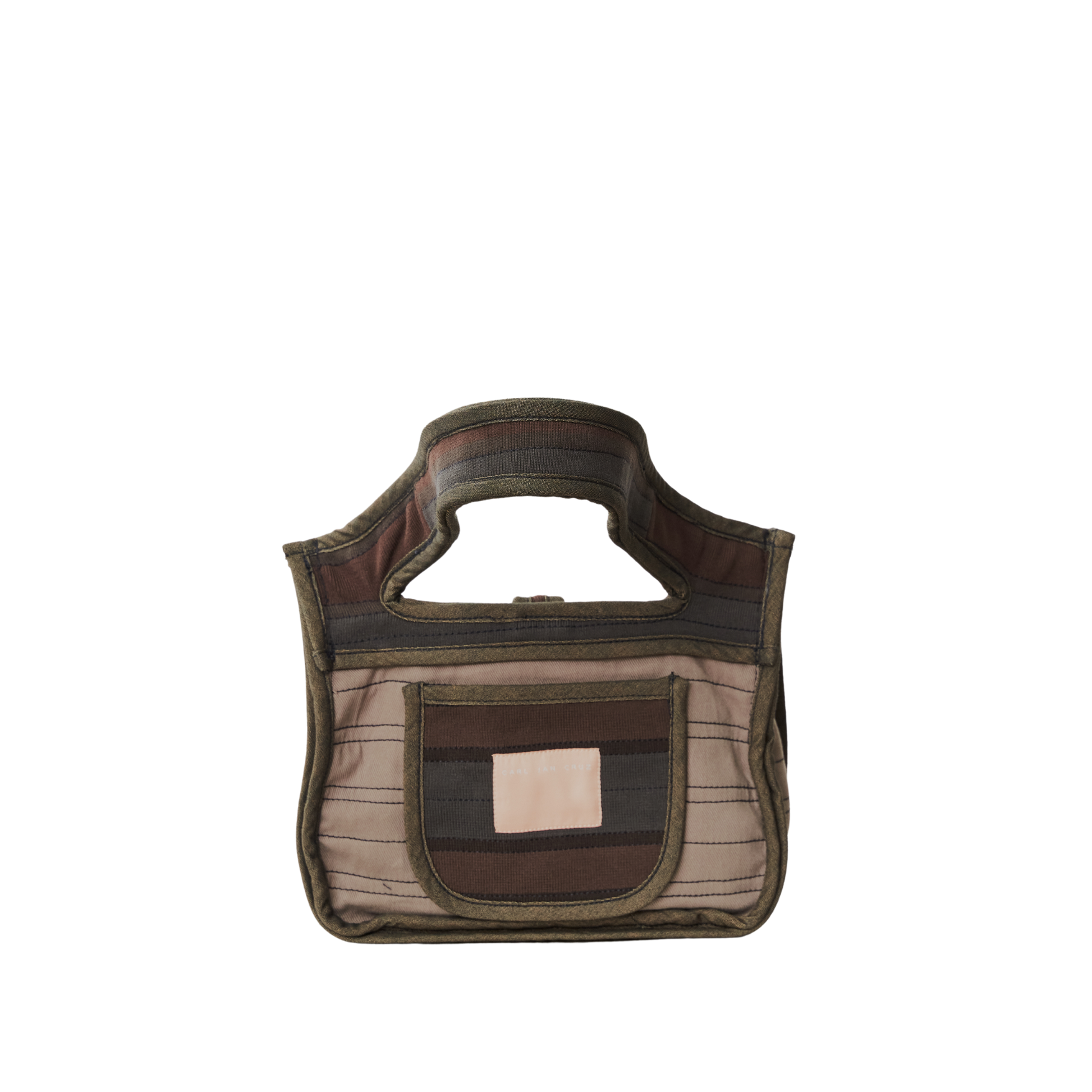 A placemat-shaped bag in rib, twill, and poplin featuring ties to secure the slashed opening, providing easy access to its contents.