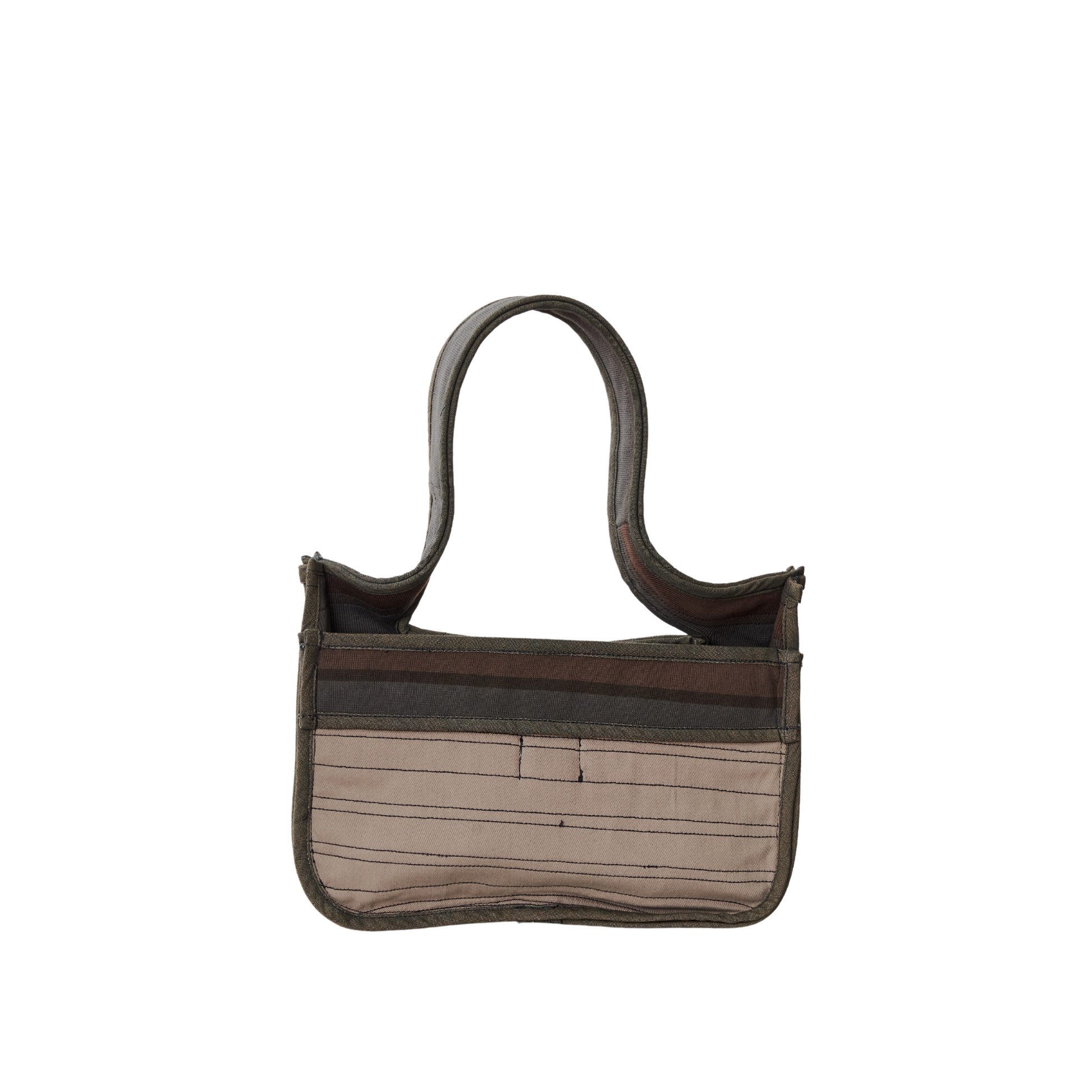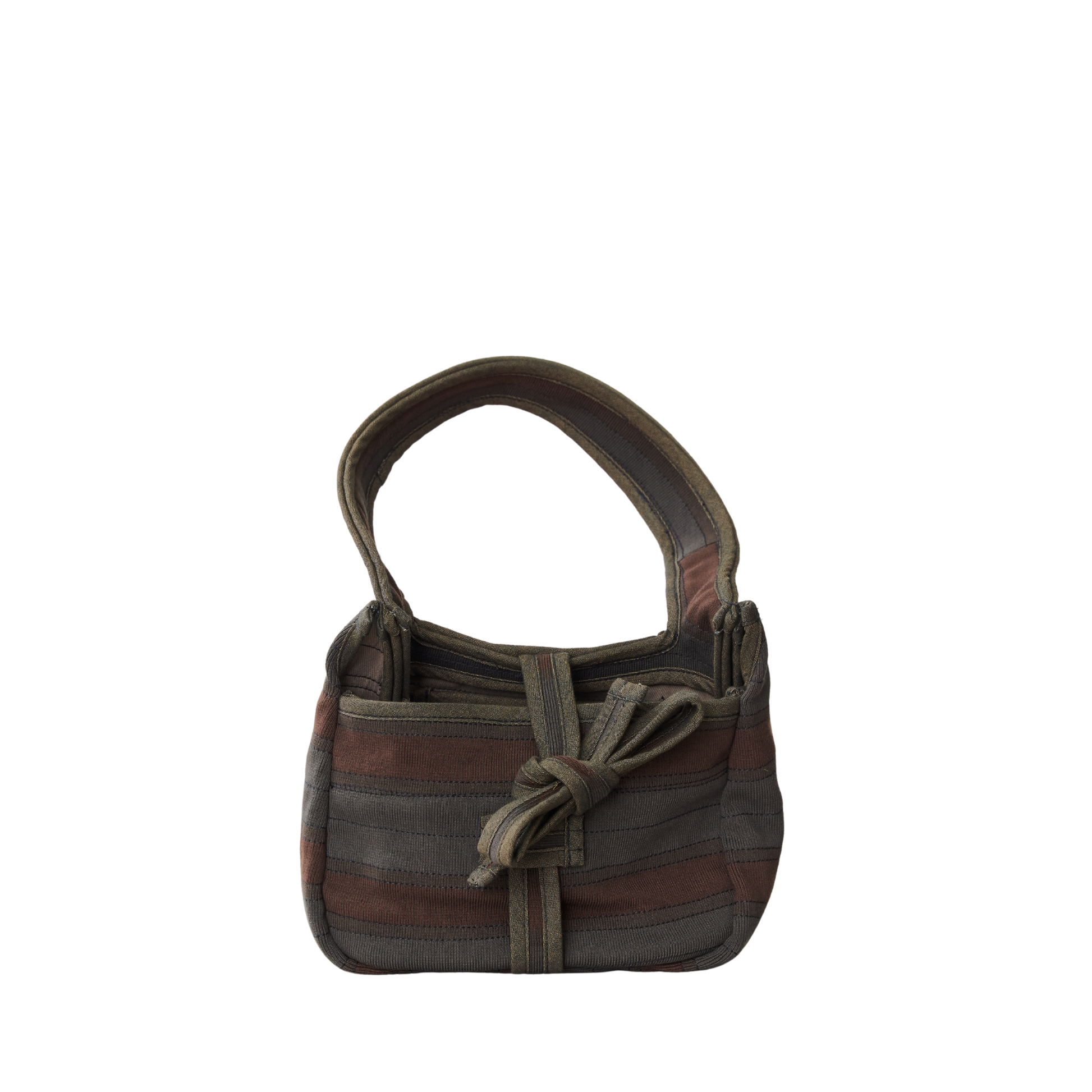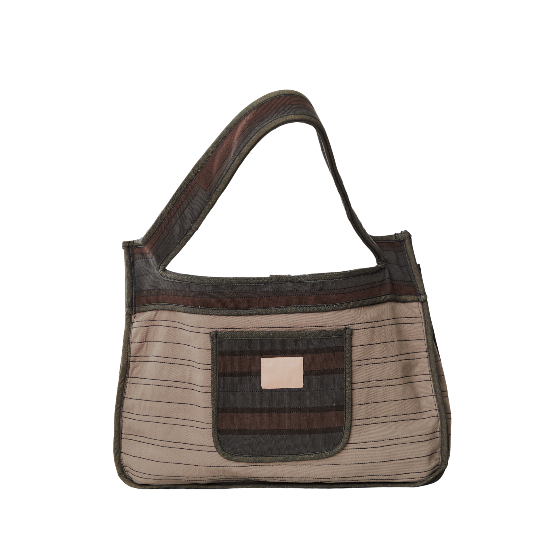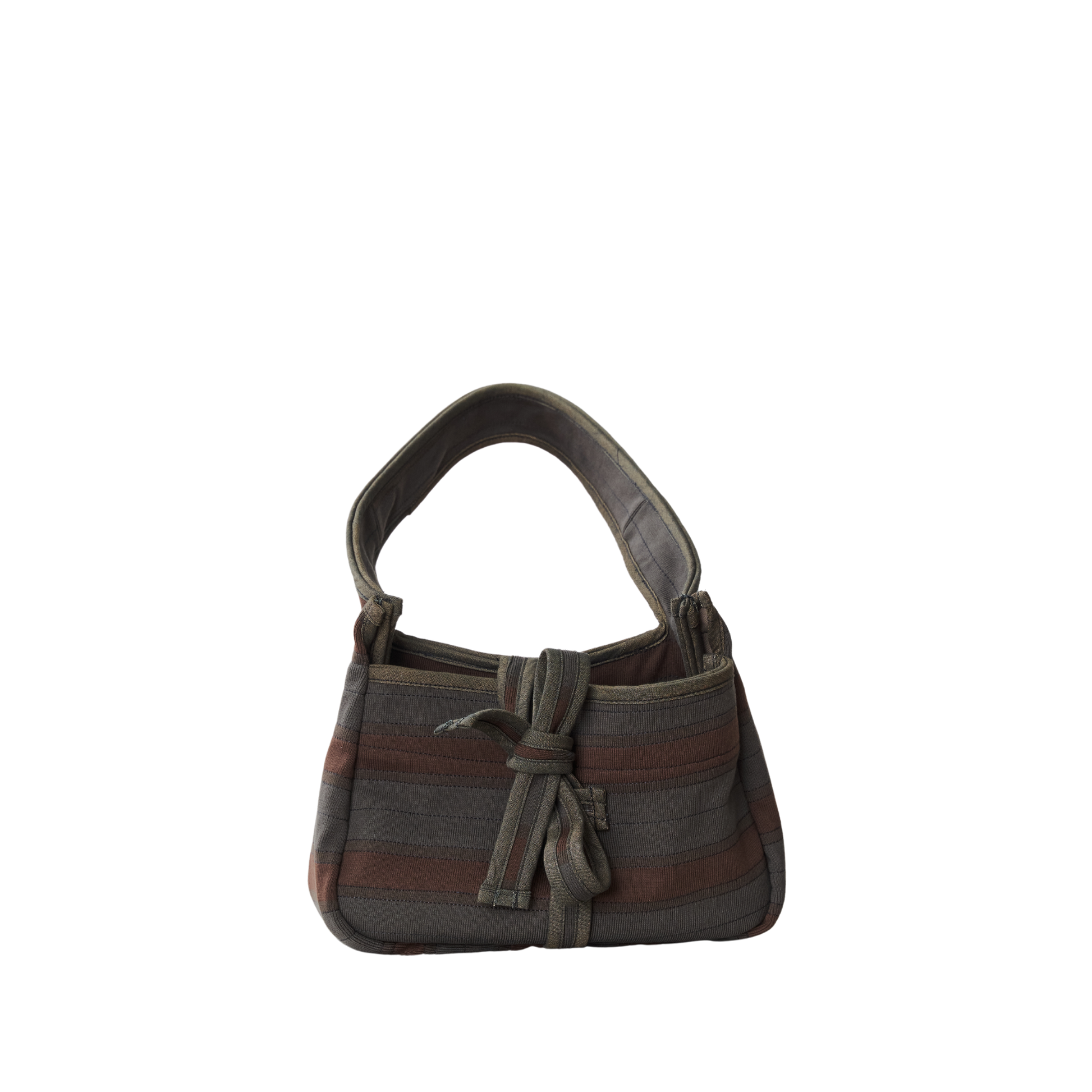 A placemat-shaped bag in rib, twill, and poplin featuring ties to secure the slashed opening, providing easy access to its contents.