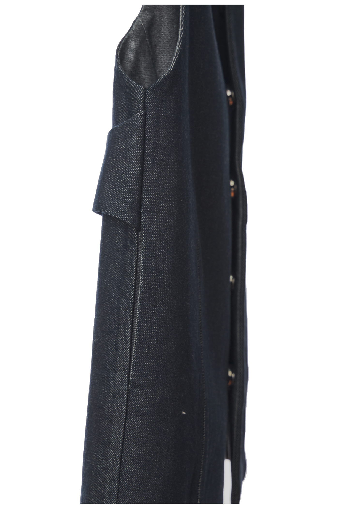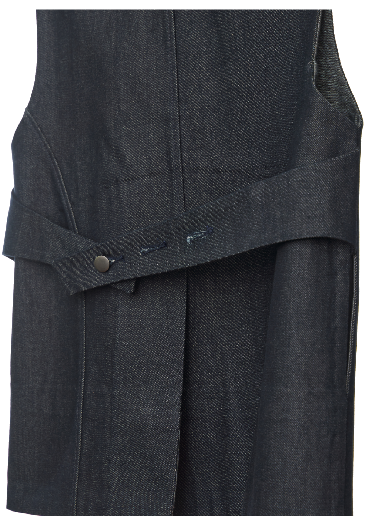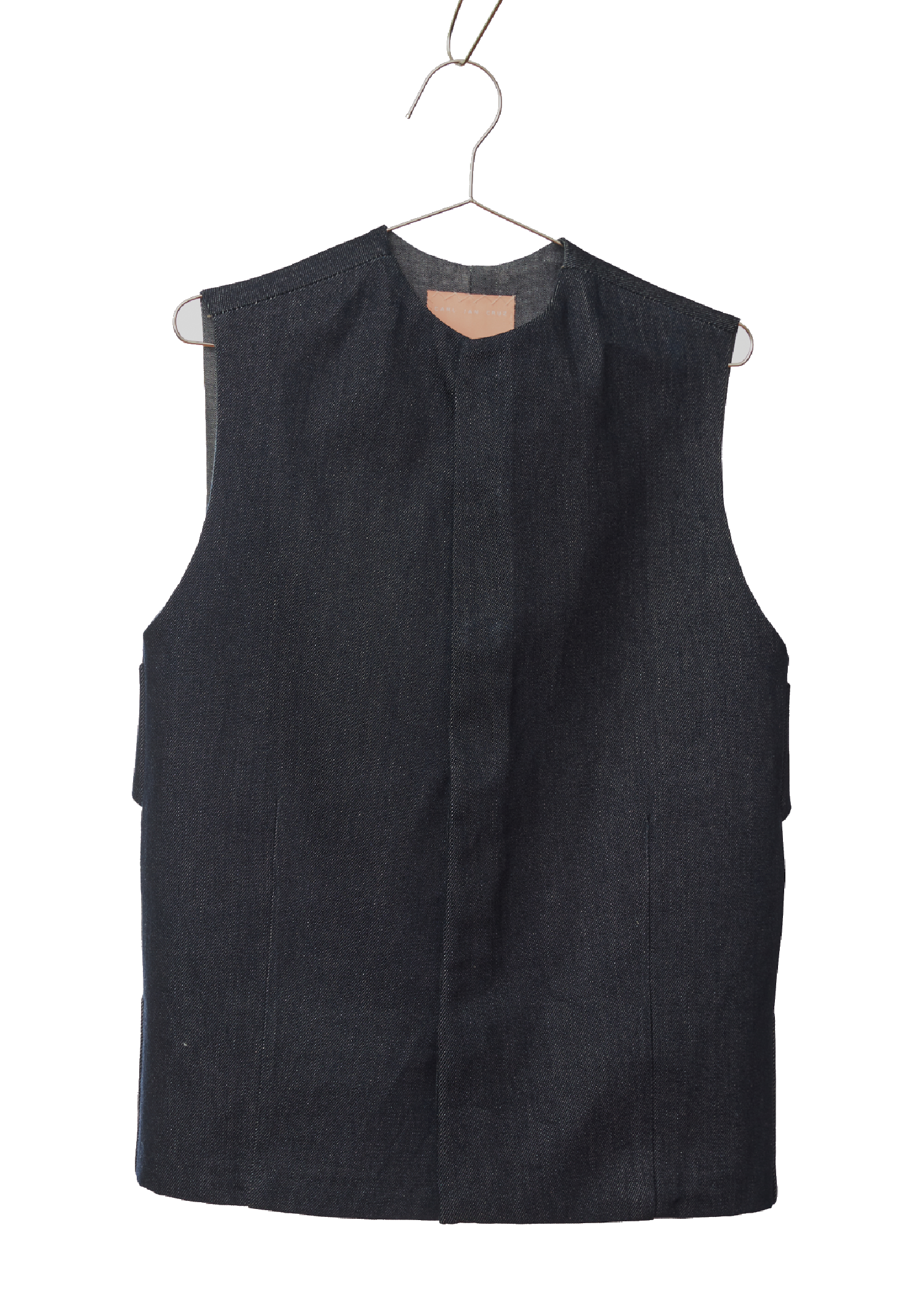 A sleeveless vest top in Edition 0 that can be worn unfastened as a layering piece or closed as it is depending on one’s liking. The back features an adjustable strap for a cinched in or relaxed fit.