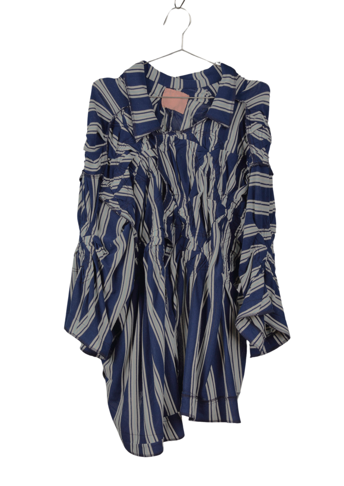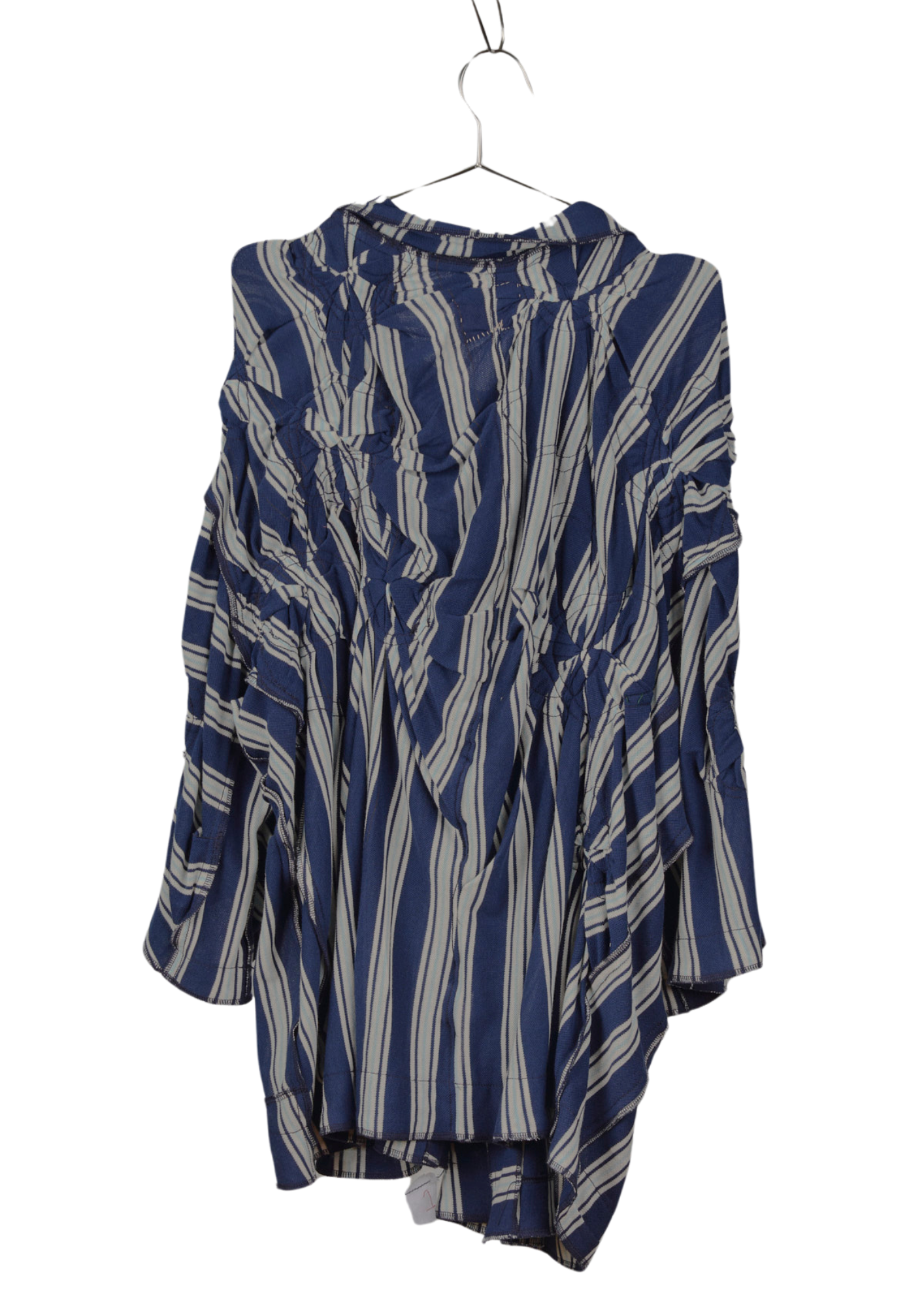 A flared loose collared shirt in gathered quilted pique with snap closures.
