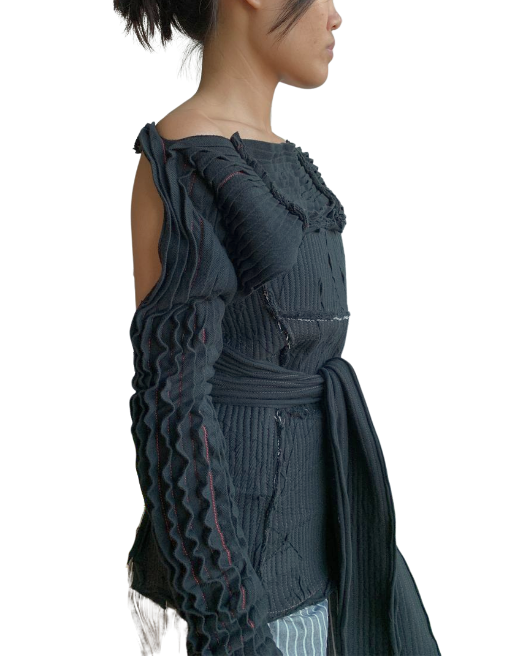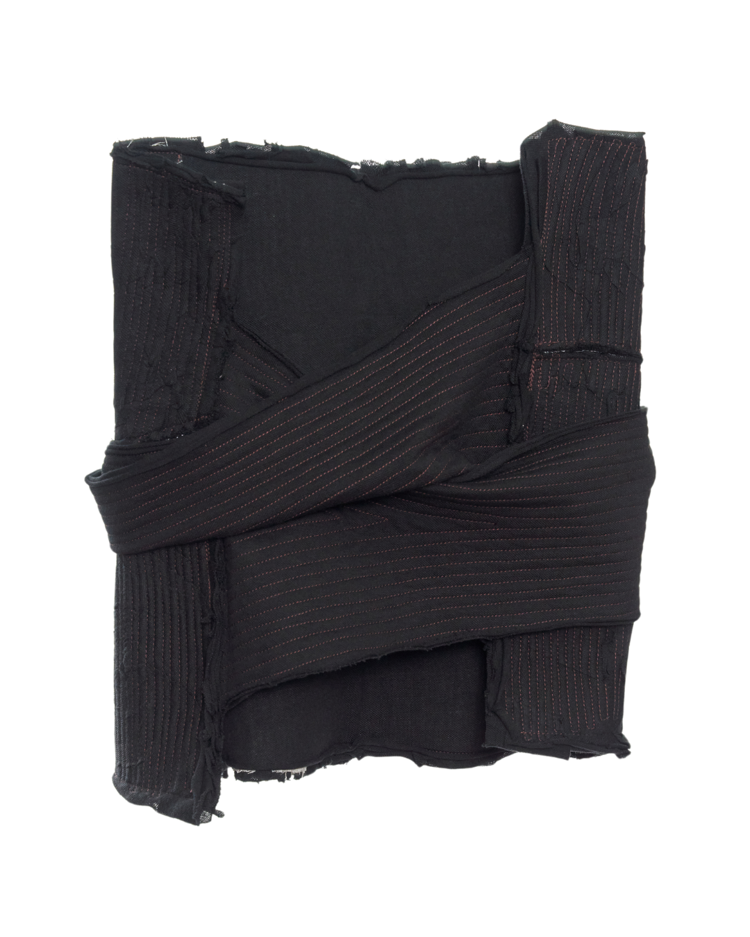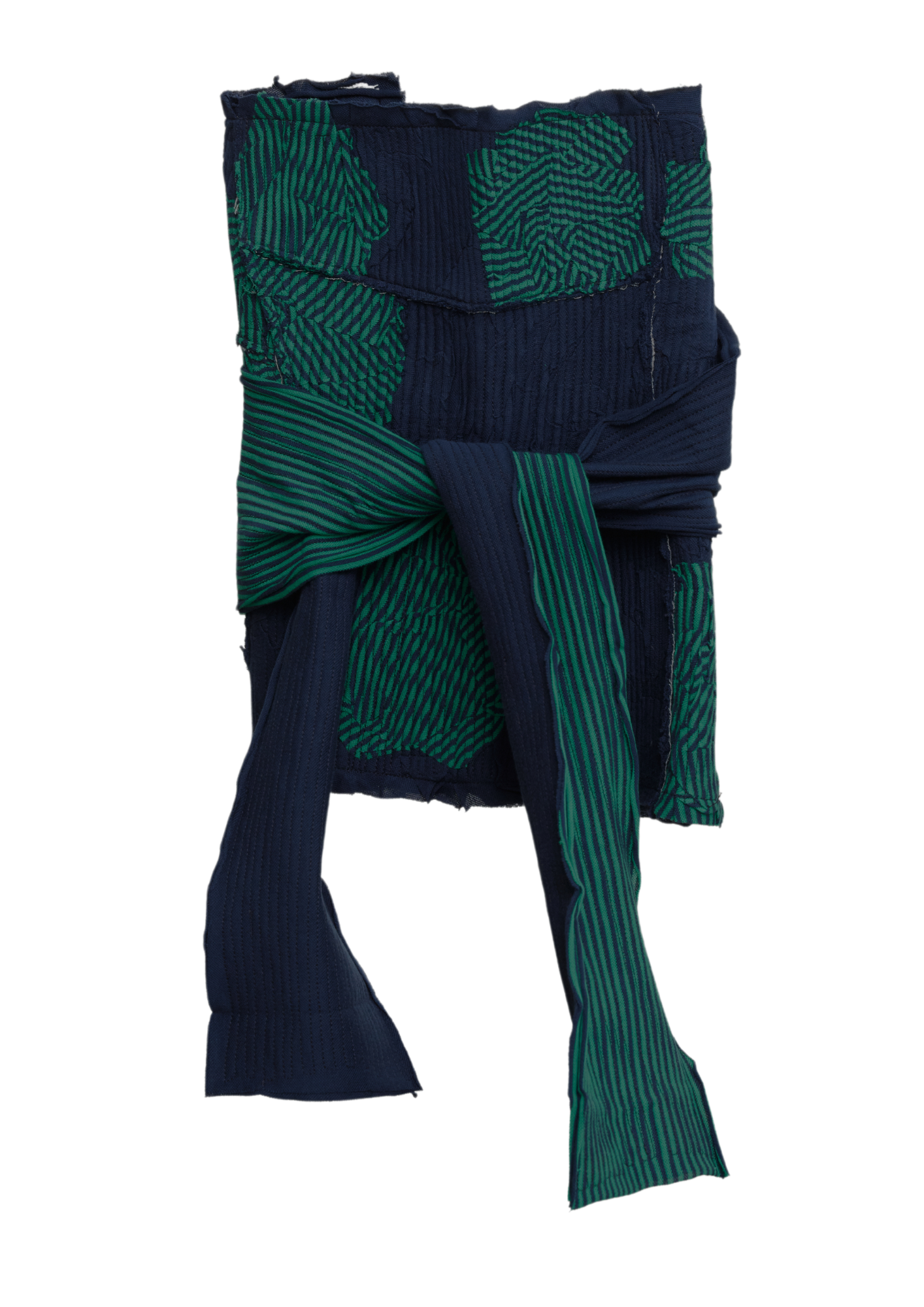 A multiwear accessory in ruched and pressed pique, featuring fabric ties for fastening.