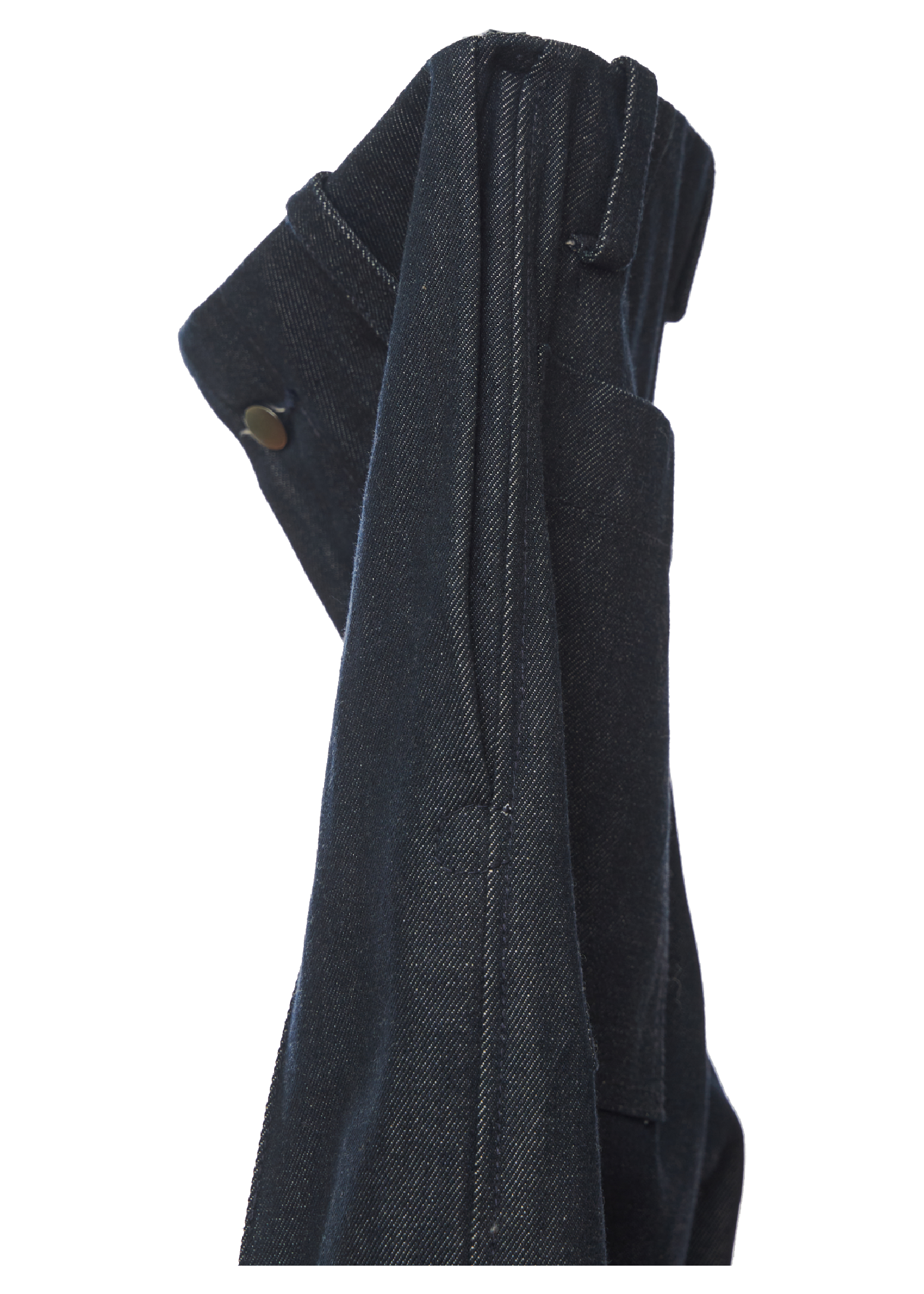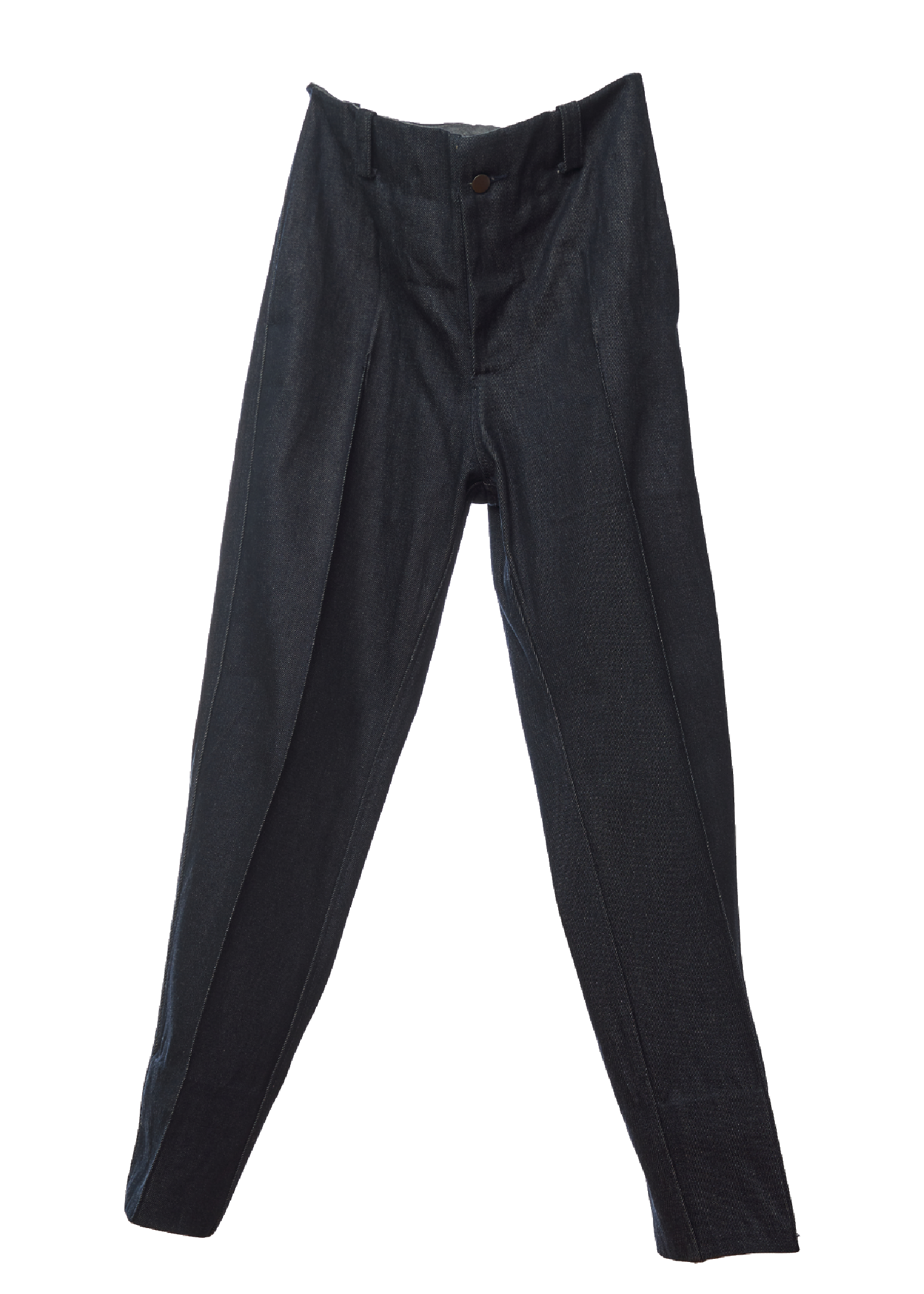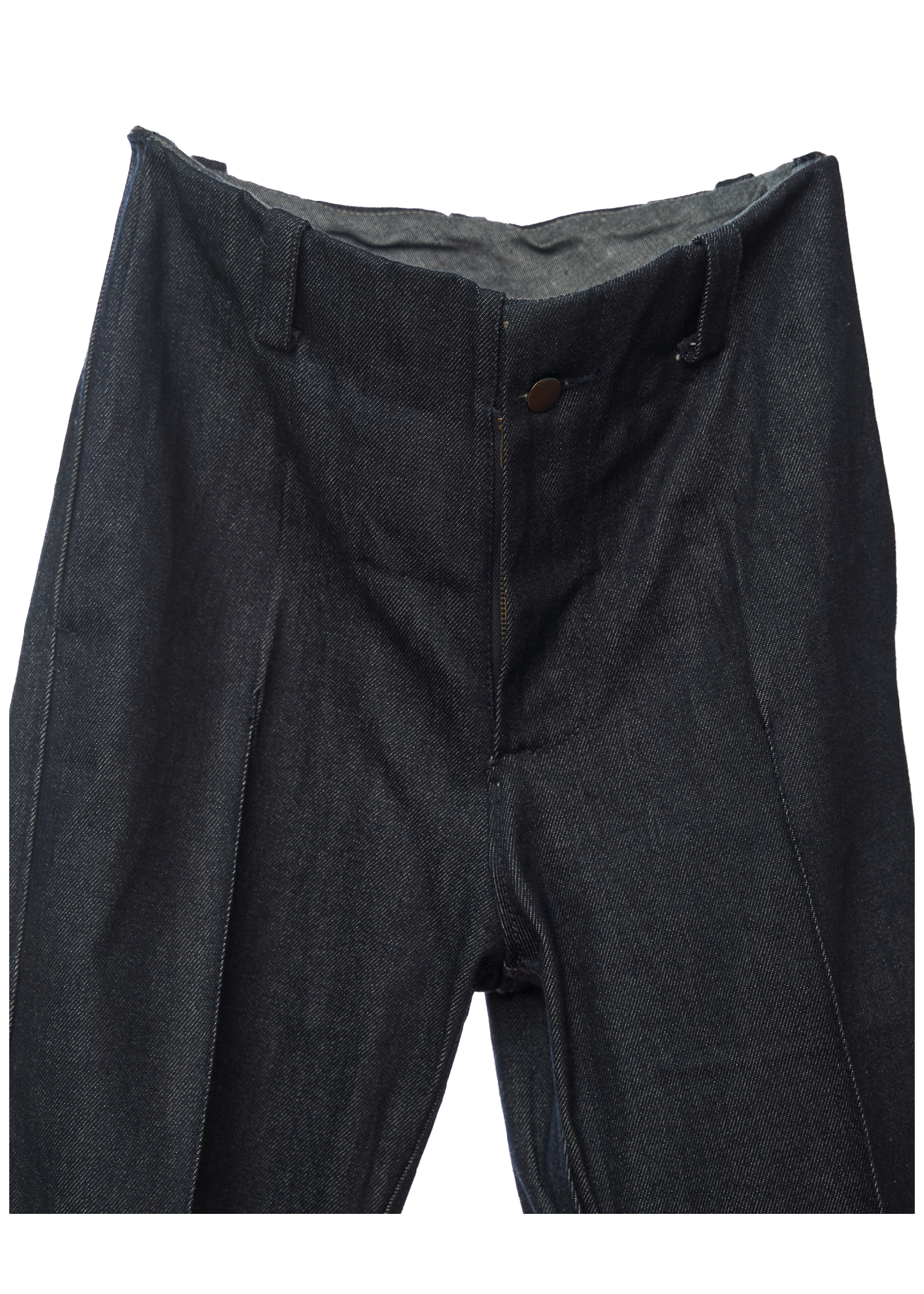 Tapered bonded jeans with a mid-rise, wide-fit silhouette, featuring hand-sewn detailing on the waistband and hem.