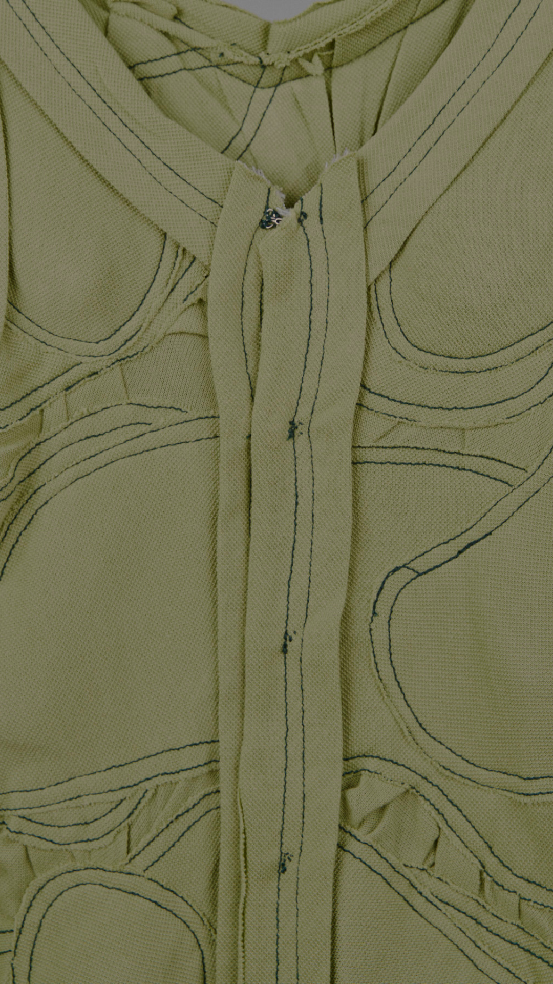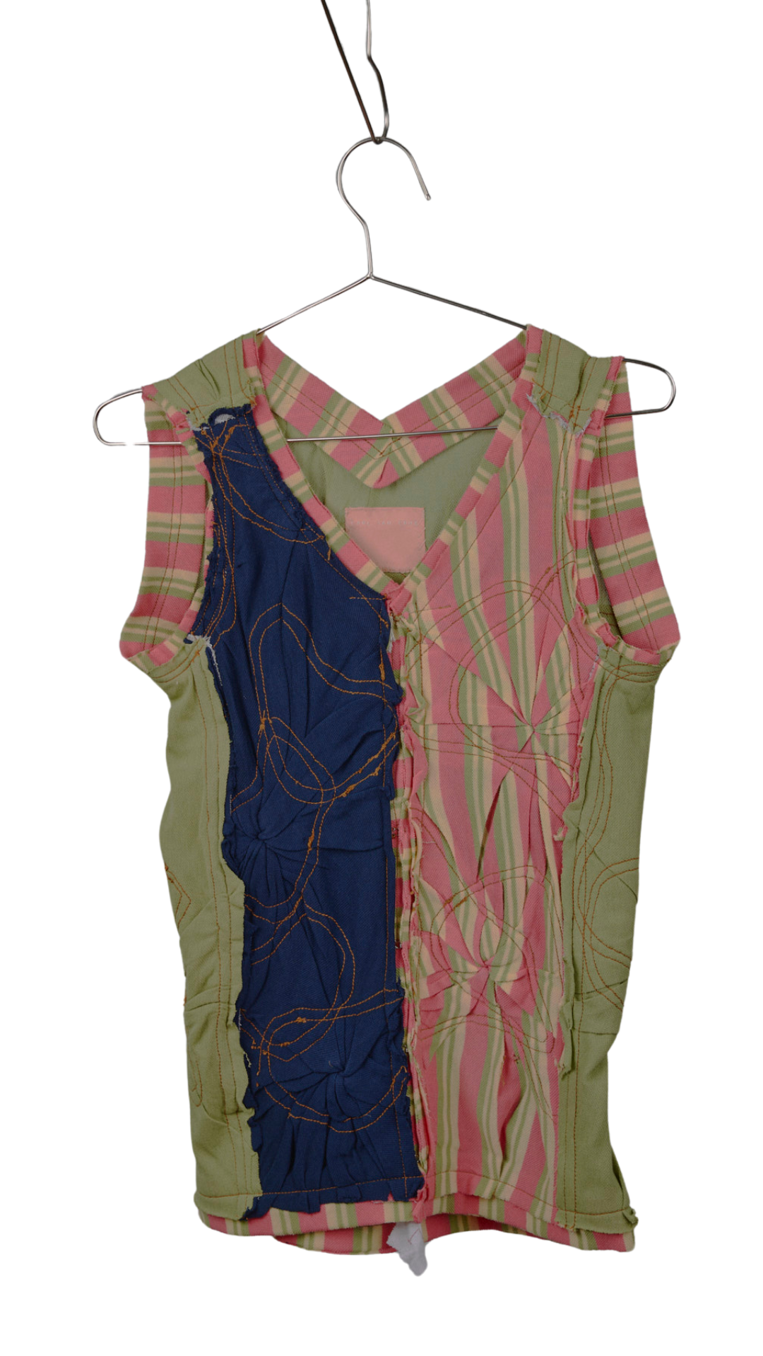 A reversible tank in gathered quilted pique with hook & eye closures.