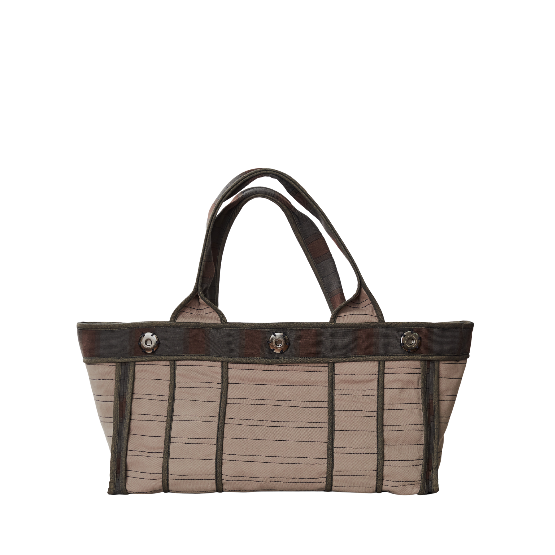 A proposition to a classic tote bag carefully crafted with rib, twill and poplin. Completed with double signature snap closures and well-structured handles.