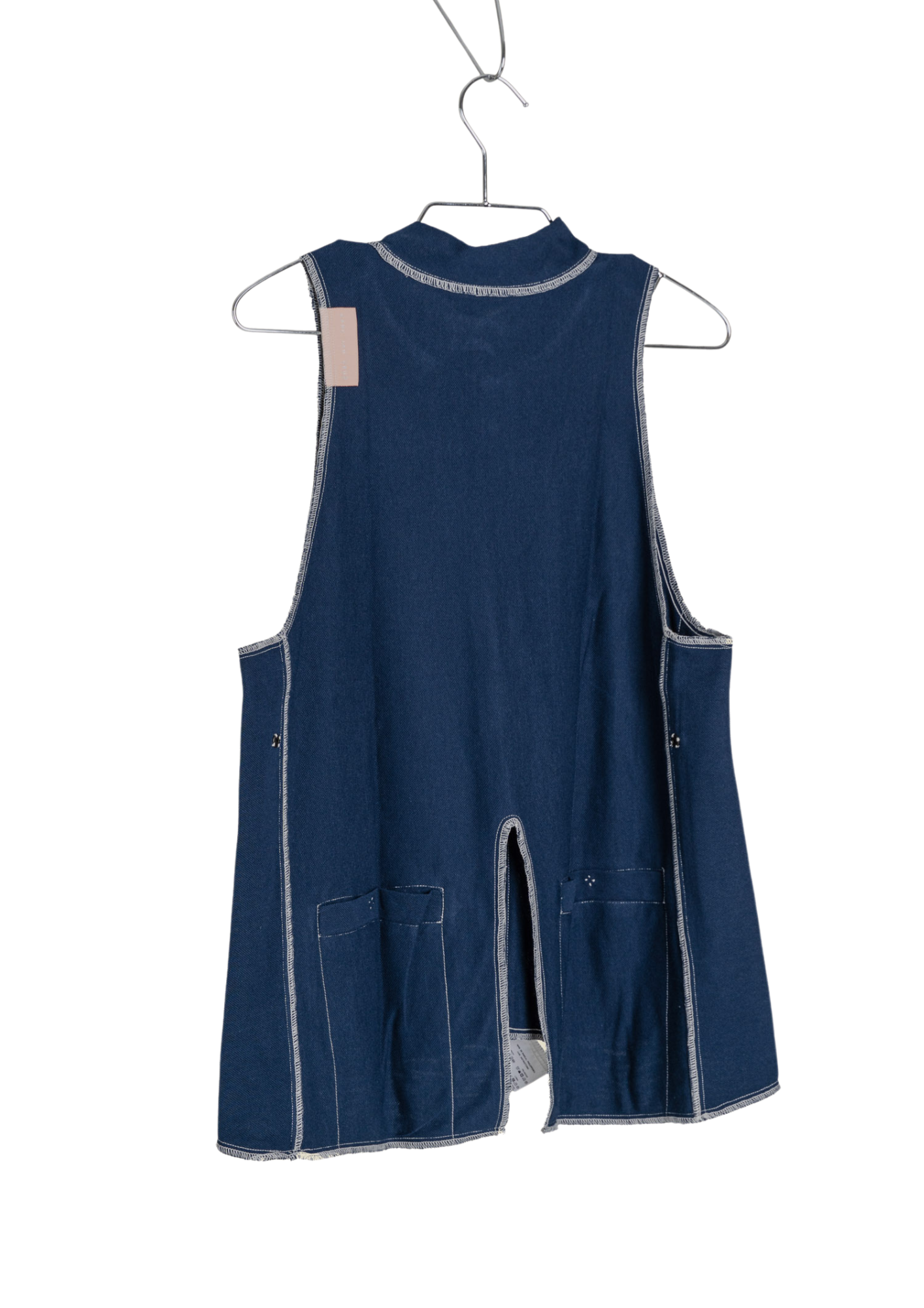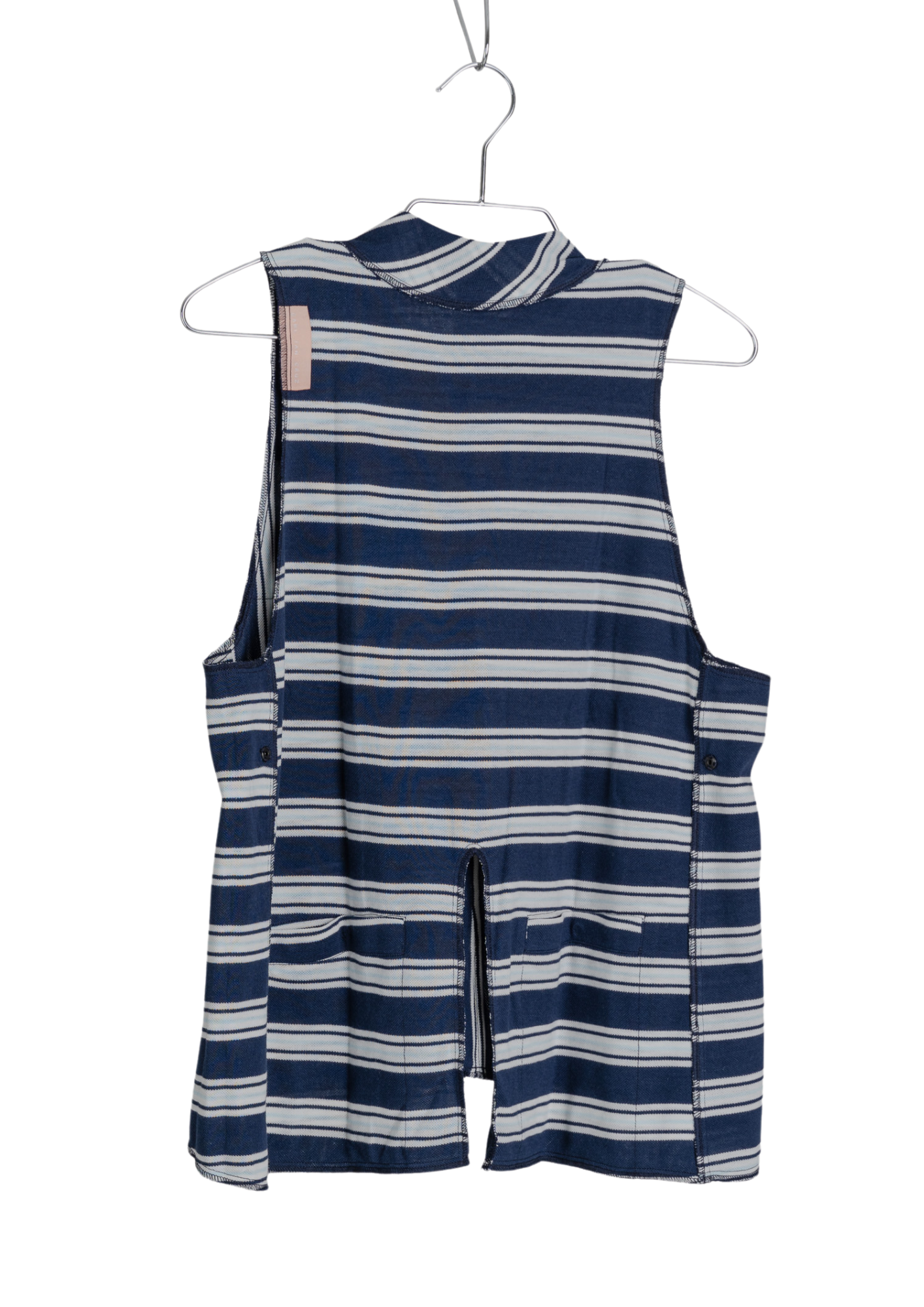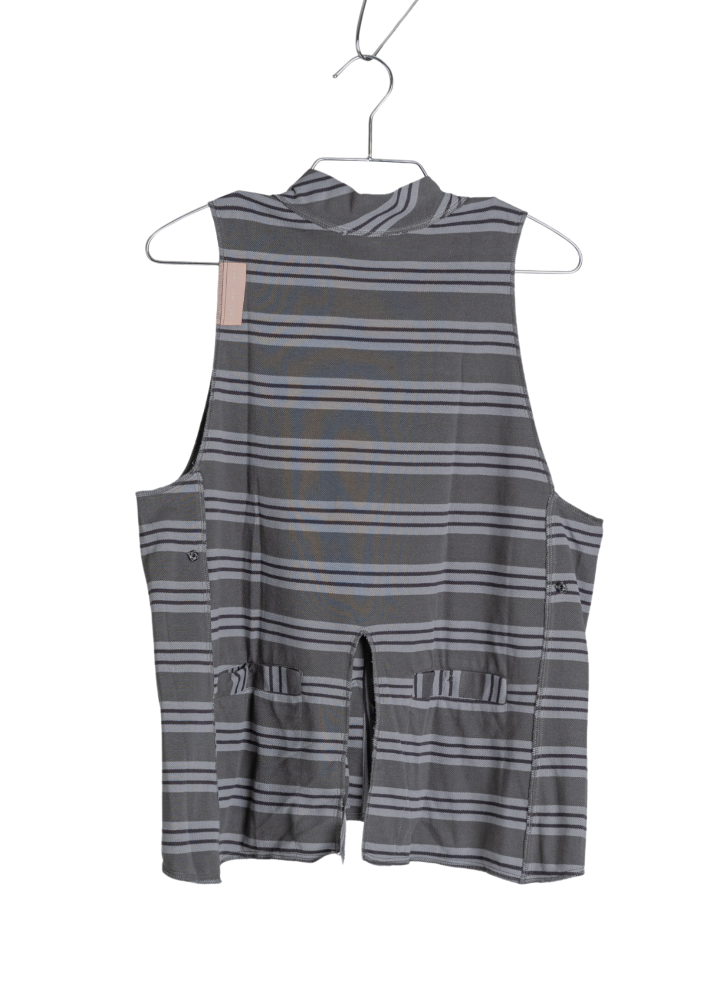 A sando and vest hybrid that can be worn over or under your garment with a generous concealed six (6) pockets. Has a side snap and extendable panel to cinch or relax the fit. Has a center opening to either close it or leave it be.