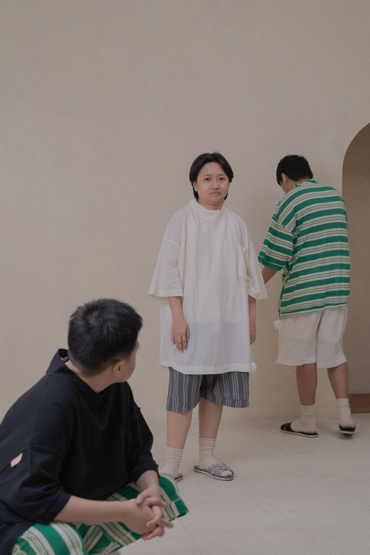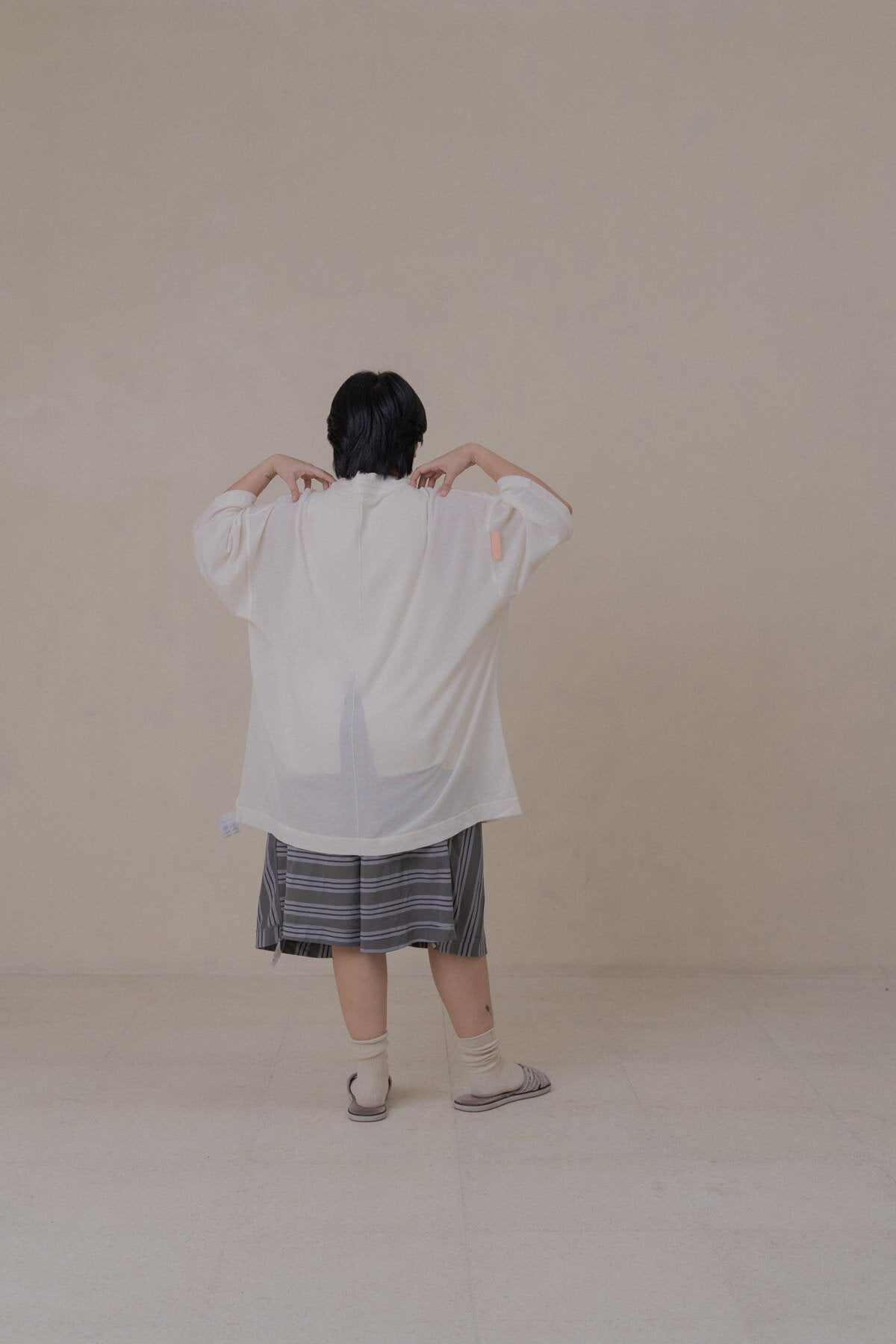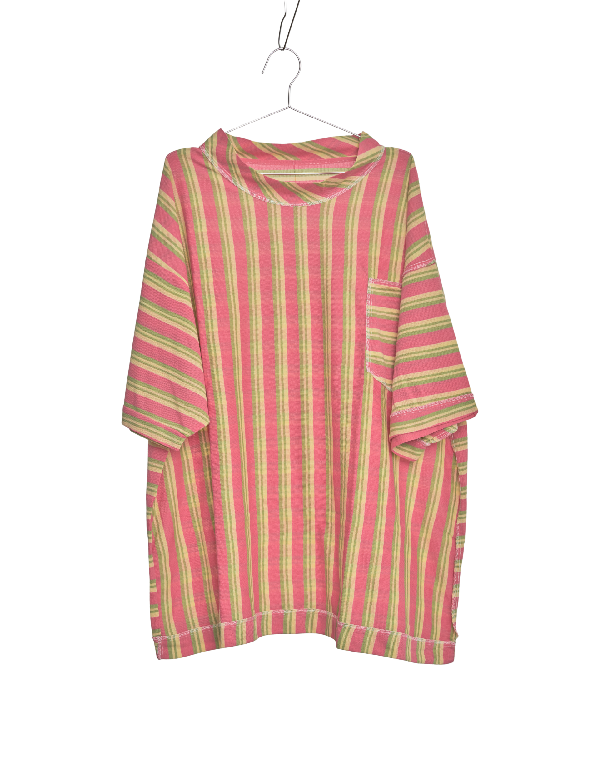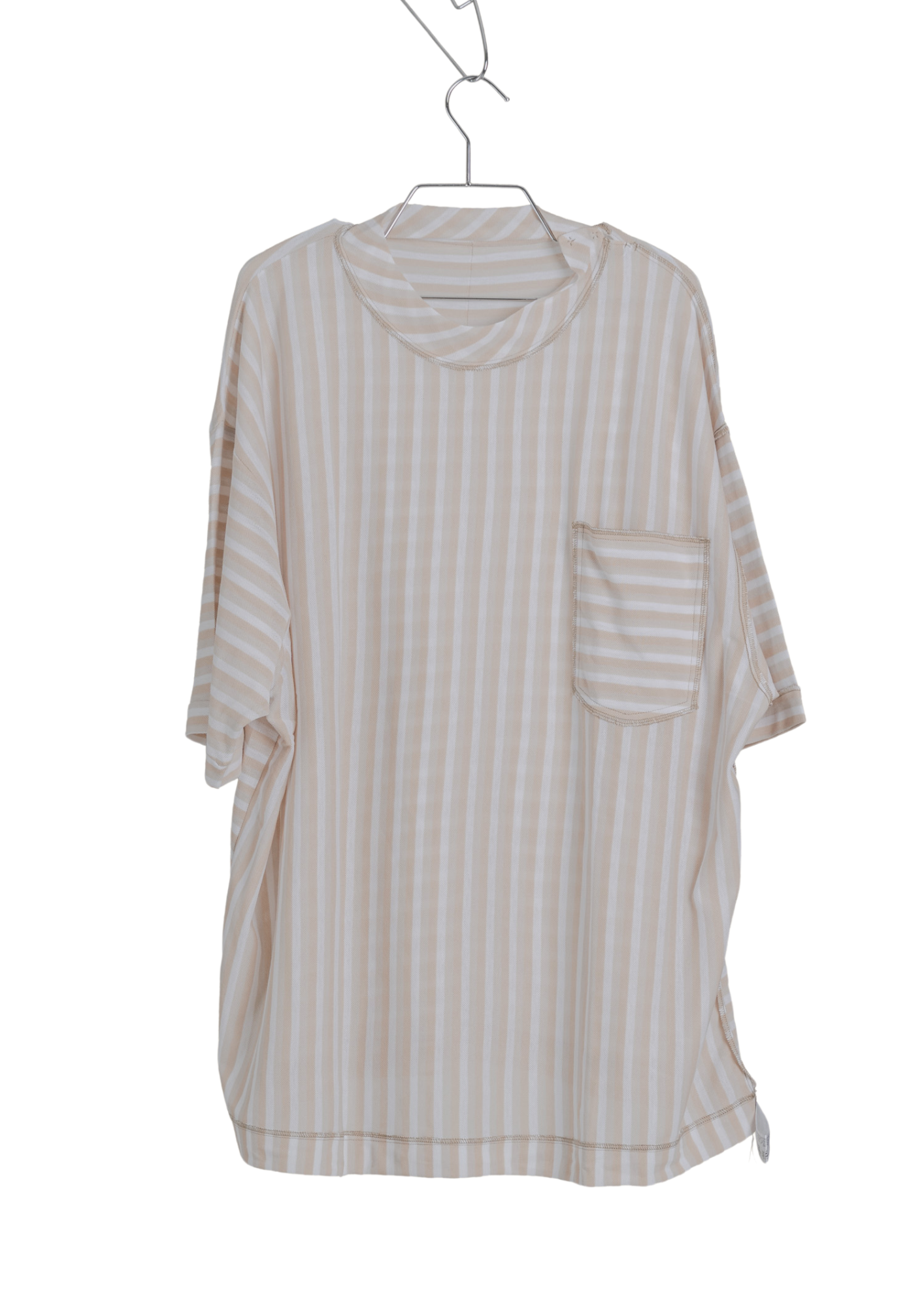 A universal oversized, maybe-a-dress-tee that you throw over your usual underpinnings of a tank, bra, or none at all. And here’s a little pocket to hold your small and important essentials, yes to hold some earphones or Airpods maybe to get you through the bike or commute while drowning out the noise.